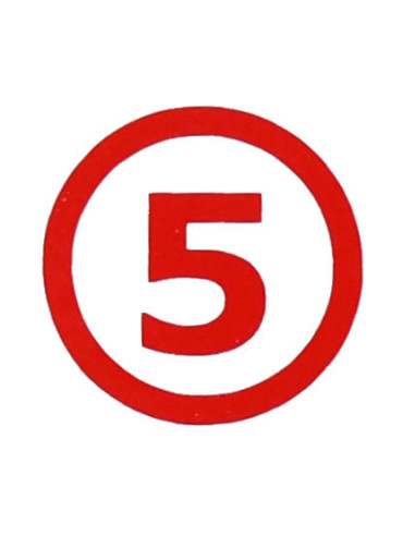 Izrada nalepnice sa brojem u krugu za ulazna vrata, poštansko sanduče, bicikl, trotinet, automobil... Broj, veličina i font se mogu promeniti prema Vašim potrebama. Radi se na auto foliji koja je dosta otporna. Na sajtu se nalazi broj u krugu prečnika 4 cm - boja crvena - broj 5