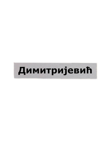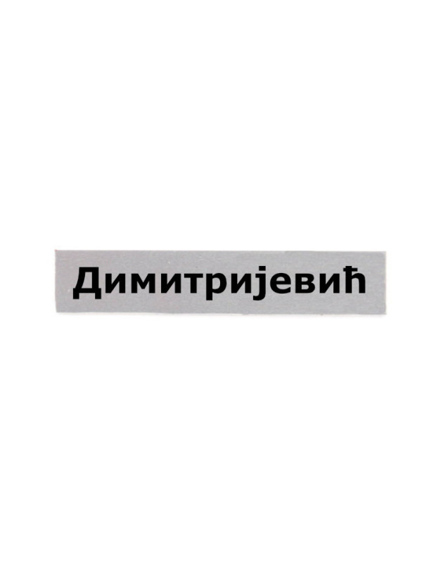 Izrada pločice .- plastična širine 2 cm i dužine prema prezimenu - srebrne boje sa nalepljenim slovima - prezime se radi po Vašoj želji ali isto tako možete kupiti i neko od gotovih prezimena - Dimitrijević