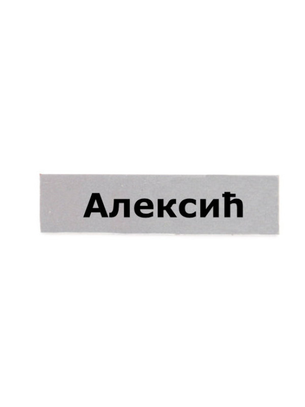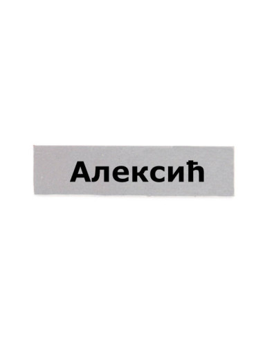 Izrada pločice .- plastična širine 2 cm i dužine prema prezimenu - srebrne boje sa nalepljenim slovima - prezime se radi po Vašoj želji ali isto tako možete kupiti i neko od gotovih prezimena - Aleksić