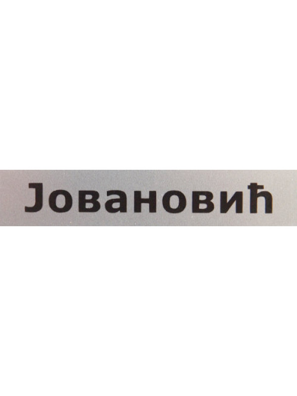 Izrada nalepnice sa prezimenom koja se lepi na ulazna vrata po povoljnoj ceni. Prezime, boju i veličinu sami određujete. Kod boje je bitno da postoji kontrast u odnosu na vrata. Prezime Jovanović