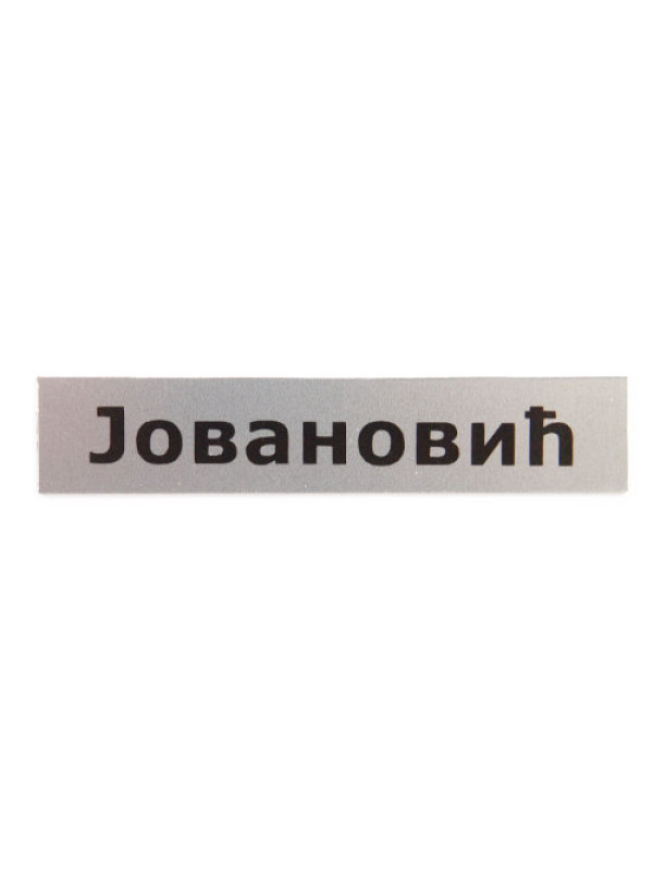 Izrada pločice .- plastična širine 2 cm i dužine prema prezimenu - srebrne boje sa nalepljenim slovima - prezime se radi po Vašoj želji ali isto tako možete kupiti i neko od gotovih prezimena - Jovanović