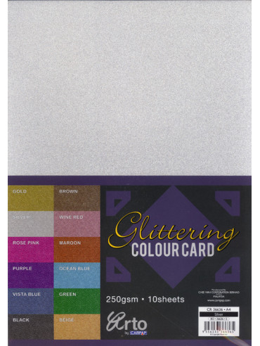 Pakovanje od 10 komada gliter kartona - pogodan za različite vrste ručnih radova kao i za dečije projekte - boja srebrna