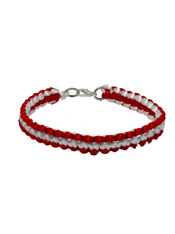 Narukvice u boji - izrada i prodaja - rađene od kanapa u boji sa metalnom vezicom i dve alkice. Boja ove narukvice je crveno-bela