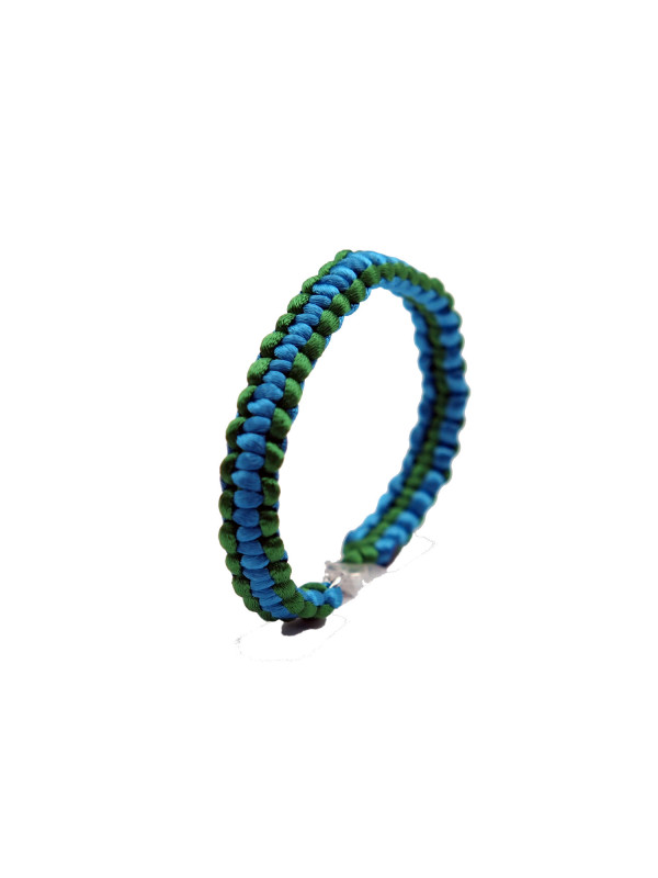 Narukvice u boji - izrada i prodaja - rađene od kanapa u boji sa metalnom vezicom i dve alkice. Boja ove narukvice je plavo-zelena