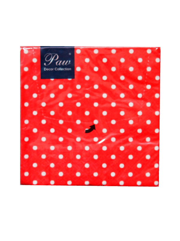 Pakovanje od 20 salveta za dekupaž tehniku sa motivom crvena boja sa belim tačkicama